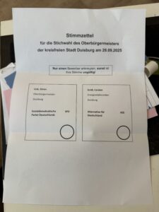 Die Kommunalwahl 2025 in Duisburg lässt mich fassungslos zurück – und diesmal nicht nur wegen der üblichen Politikverdrossenheit. Selbst die düstersten Prognosen wurden unterboten. Während ich noch hoffte, dass die Umfrage-Schreckgespenster zum Thema AfD am Ende doch schrumpfen würden, brachte der Wahltag einen kaum zu glaubenden Rechtsrutsch ans Licht: Die AfD marschiert mit 21,2 Prozent auf Platz zwei im Stadtrat, holt das zweitbeste Ergebnis und schickt ihren Kandidaten in die OB-Stichwahl.